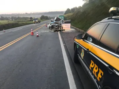 Uma pessoa morreu e pelo menos outras cinco ficaram feridas após um grave acidente envolvendo um carro que transportava pacientes para hospitais de Curitiba e um caminhão bitrem. A batida aconteceu na BR-277 em Palmeira, nos Campos Gerais do Paraná, na manhã desta terça-feira (25)