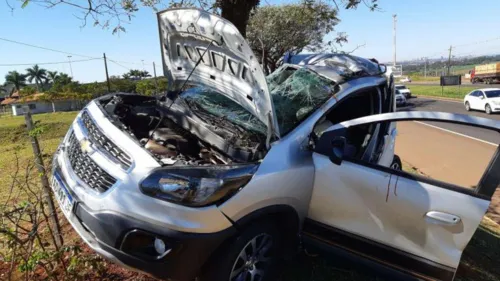 Um carro com placas da Argentina se envolveu em um acidente na manhã desta segunda-feira (8) na BR-369 em Cambe. O veículo atingiu uma árvore e ficou destruído.