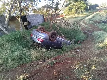 Algumas testemunhas contaram que o motorista do Escort seguia sentido a Vila Nova, quando foi realizar uma ultrapassagem e acabou perdendo o controle passando pelo meio de uma casinha que é usada para guardar ferramentas e caiu de bico, ficando com as rodas para a cima.