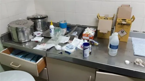 Armários dos funcionários, gavetas da parte administrativa, tudo foi revirado. Até mesmo latas de suplementos foram abertas e parte consumida. Torneiras do atendimento odontológico foram furtadas.