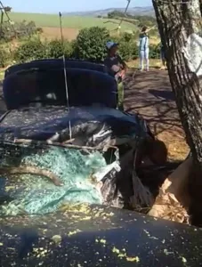 Conforme informações, o motorista perdeu a direção do veículo e colidiu com uma árvore. Equipes de socorro foram acionada para resgaste do motorista que ficou preso entre as ferragens. Em breve mais informações.