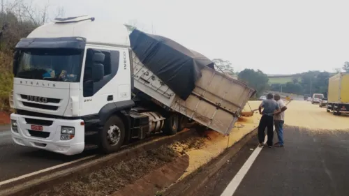 De acordo com informações da Polícia Rodoviária Estadual (PRE), as laterais do caminhão abriram durante o trajeto, despejando uma grande quantidade de milho na pista.
