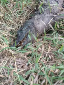 Um jacaré que vivia na represa do Café em Marilândia do Sul foi morto a tiros. Acredita-se que o crime tenha acontecido neste final de semana.
