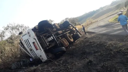 Caminhão tomba na Rodovia do Milho nesta manhã