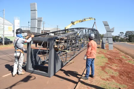 Com a instalação da estrutura de metal, a previsão para a conclusão do portal é de aproximadamente dois meses relata o diretor do Departamento Municipal de Obras, Bruno Montoro. “Com a estrutura metálica montada será feito o revestimento com chapas ACM (aço escovado), depois a instalação do letreiro e a iluminação”.