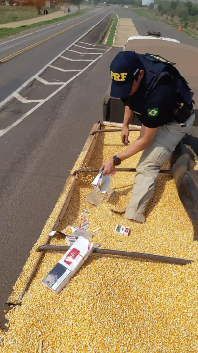 Quando os policiais rodoviários federais começaram a retirar as lonas dois dois semirreboques, o homem confessou que transportava cigarros contrabandeados do Paraguai.