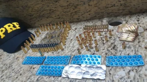 A Polícia Rodoviária Federal (PRF) apreendeu 250 munições, 100 comprimidos de estimulante sexual e dez comprimidos de medicamento abortivo na noite de sábado (14) em Santa Terezinha de Itaipu, na região oeste do Paraná.