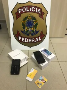 O aparelho celular foi recuperado na residência do principal investigado, durante cumprimento de mandado de busca expedido pela Justiça Federal de Londrina/PR.