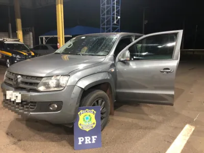 Na madrugada desta segunda-feira, (28), por volta das 3h15, agentes da Polícia Rodoviária Federal, (PRF), interceptaram uma caminhonete VW/Amarok, com placas de São Carlos, SP, e em fiscalização, encontram na caçamba e também dentro do veículo aproximadamente 35 mil maços de cigarros contrabandeados do Paraguai.