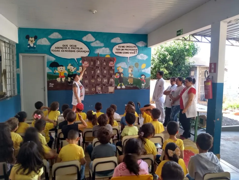 As crianças do Centro Municipal de Educação Infantil (CMEI) Pingo de Gente, de Lunardelli, receberam na quinta-feira (24), a visita dos dentistas Almir e Fabiana, que atuam pela secretaria municipal de Saúde. Os profissionais foram até a instituição para realizar uma ação junto aos alunos que estão previstas no projeto Lunardelli Sorridente.