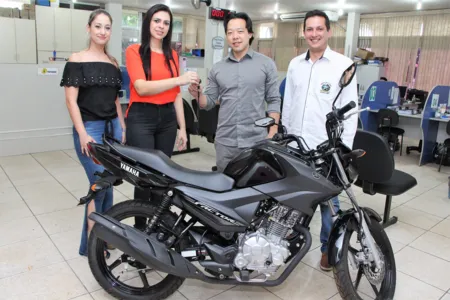 O sorteio e entrega da motocicleta foram realizados no setor de Tributação da Prefeitura e na presença de servidores municipais.