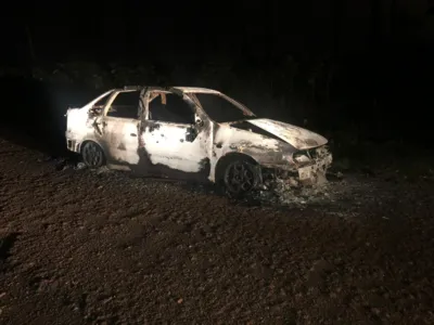 Após buscas a PM encontrou por volta das 2h40 de hoje, o Volkswagen Polo incinerado, com um corpo, carbonizado dentro.