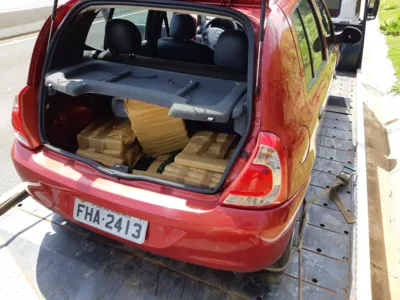 A droga estava no bagageiro de um veículo Renault Clio que estava sendo guinchado.