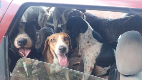 No carro dos suspeitos, foi encontrado nove cães que eram usados para caçar animais.