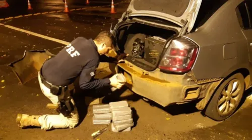 A droga estava escondida dentro do para-choque traseiro e no painel de instrumentos de um automóvel Nissan Sentra, abordado na BR-487.