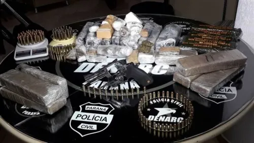 Conforme a Denarc, dentro carro onde eles estavam, foi encontrado uma porção de maconha. Já na casa do suspeito em Cambé, os policias localizaram uma arma além de munições.