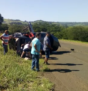 Duas pessoas ficaram feridas após capotamento registrado na manhã desta quarta-feira (25), na PR-170 (Rodovia do Milho), em Novo Itacolomi.