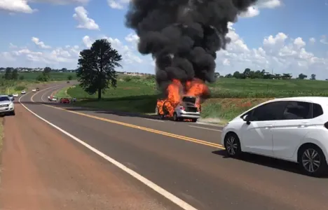Carro pega fogo na estrada entre Jandaia do Sul e Cambira; assista ao vídeo