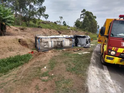 A princípio o motorista perdeu o controle da direção em uma curva, e tombou. Apensar do susto, o condutor sofreu ferimentos leves e passa bem.