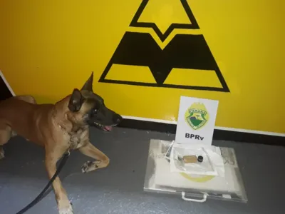 Equipe canil da Polícia Rodoviária de Rolândia apreende mala com maconha