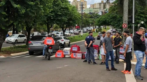 Entregadores do iFood, Uber Eats e Rappi protestaram contra taxas de entrega na tarde desta terça-feira (4), na avenida Higienópolis com a rua Bento Munhoz da Rocha Neto, em Londrina.