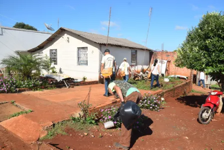 Na manhã desta quinta-feira, as equipes de combate à dengue trabalhavam em visitas técnicas na Vila Nova Porã, eliminando os criadouros do Aedes aegypti.