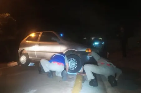 O homem ficou debaixo do veículo até ser encontrado por um guarda que fazia rondas no bairro. Ele sofreu ferimentos no pé e queimaduras pelo corpo, porque o carro ainda estava com o motor quente.