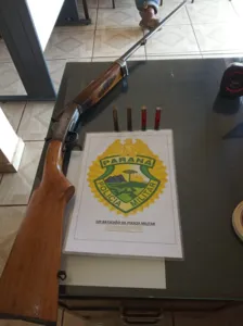 Segundo a PM, a equipe foi até a casa do suspeito e encontrou o homem que aparentava fortes sintomas de embriaguez. Durante buscas no quarto dele, dentro do guarda-roupas, foi encontrado uma espingarda calibre 36, com quatro munições intactas.