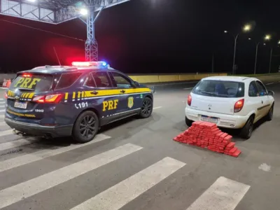 A droga estava escondida no porta-malas e sob os bancos de um automóvel Chevrolet Celta, abordado na BR-376, em frente à unidade operacional da PRF.