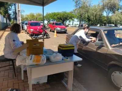 O sistema "drive thru" é disponibilizado apenas no Posto Central, onde quem não tem dificuldade de locomoção é vacinado no estacionamento.