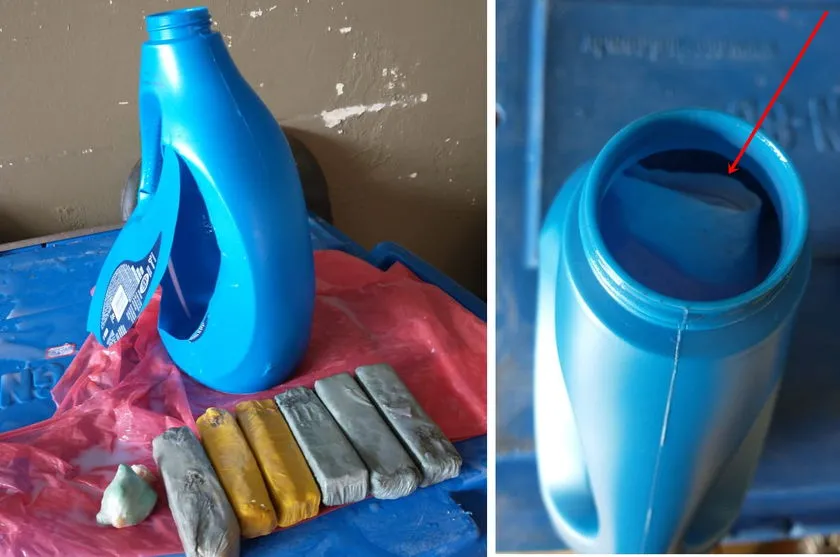 A droga foi encontrada dentro de um frasco de amaciante que seria entregue a um preso