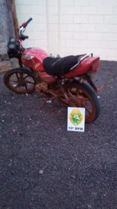No entanto, de acordo com a PM, o número do chassi da motocicleta estava visivelmente remarcado com a identificação de uma Honda/CG 125 de cor cinza.