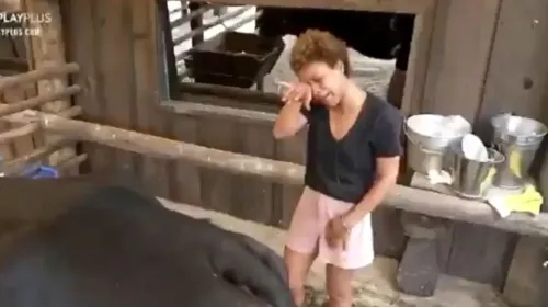 Desolada, a atriz chorou e conversou com o animal enquanto tirava o leite. Vou ter que tomar o seu leite, cara. Não vai ter jeito! Por que, meu Deus? Eu estou indo, pera. Só um minuto. Eu já tô tirando! Já tô tirando Ao que tudo indica, Lidi ficou ainda mais emotiva porque estava embriagada.