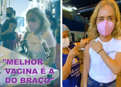 Ela brincou com a profissional de saúde que aplicou o medicamento. "Estou nervosa", disse a a apresentadora. "Eu também", brincou a enfermeira. "Você não pode! Estou emocionada, na verdade", avisou. A apresentadora ainda posou com fãs que também estavam no local aguardando sua vez.