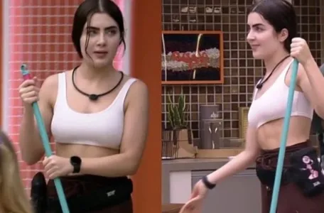 Arthur Aguiar pegou a vassoura e mostrou à Jade como que é feito o trabalho. “Você quer aprender a varrer? Tu tá varrendo aqui, anatomicamente não tem como. É sempre pra fora, vai juntando. Não faz sentido”, explicou Arthur.