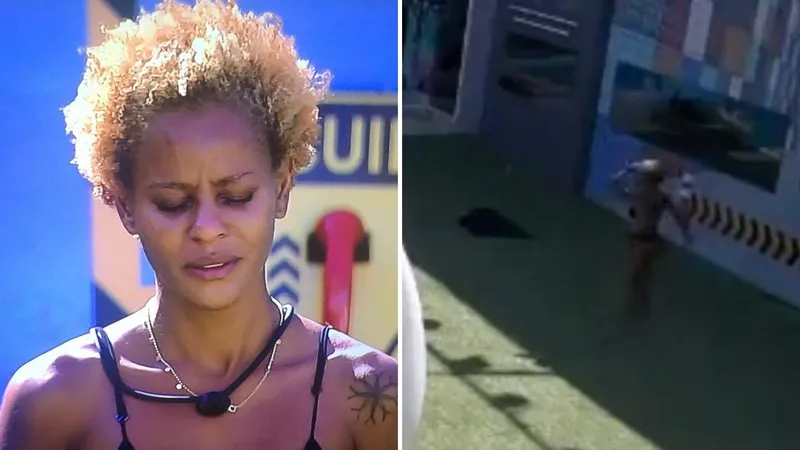 É que a produção colocou uma música para tocar altíssimo. Deitada no chão, ela se levantou rapidamente e, ainda desorientada, tentou entender o que estava acontecendo.