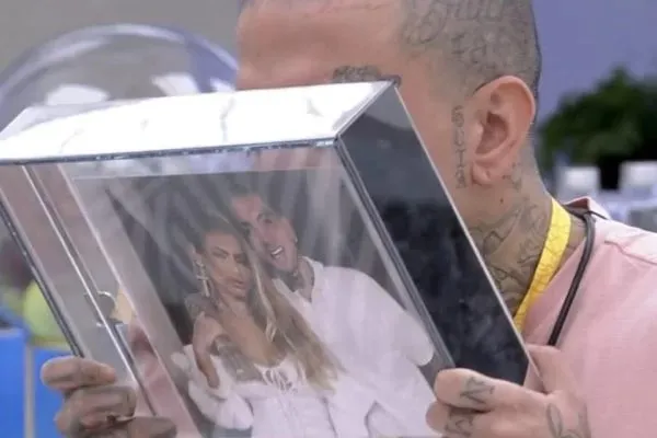 MC Guimê se despediu do Quarto do Líder na tarde desta quinta-feira (16) e aproveitou para olhar as fotos da esposa, a cantora Lexa, que decoravam o espaço. Além de se declarar para a amada, o cantor beijou o retrato.