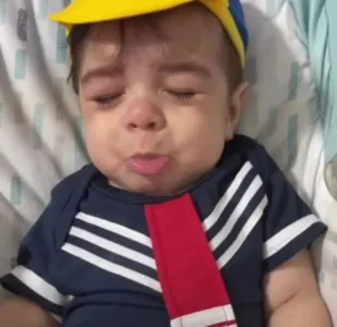 O vídeo compartilhado nas redes sociais mostra o bebê vestindo as roupas do personagem e chorando com a língua tremendo, fazendo o fofurômetro da web subir.