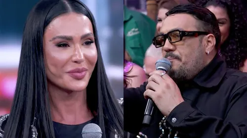 Belo, que é um ex-participante do quadro, estava no palco quando Gracyanne foi anunciada como nova estrela da atração. Então, ele falou sobre como anda a relação deles depois do fim do casamento. "Aqui existe uma amizade, um carinho, um respeito. Nós somos pessoas adultas e civilizadas”, disse ele. E ela apenas disse: "Ele já vem com o texto estudado”.