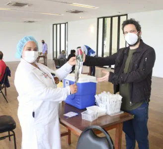 O gesto carinhoso do ator global aconteceu em um posto de vacinação no Rio de Janeiro, mesma unidade em que ele se vacinou. Emocionadas, as profissionais fizeram questão de posar ao lado do global que também apareceu feliz ao receber a primeira dose. Todos usavam máscaras e estavam devidamente protegidos.