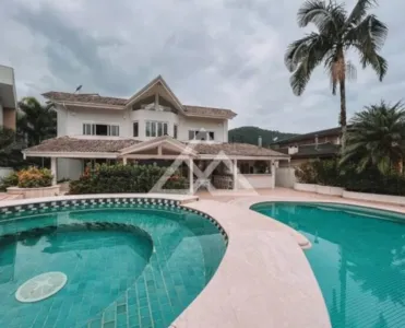 O vídeo mostra o interior da casa dividida em dois andares com um hall com um pé direito alto, jardim de inverno, sala de jantar com projetor e sala de TV. No segundo andar, suítes com vista para o mar. A casa ainda conta com espaço gourmet, piscina e spa.