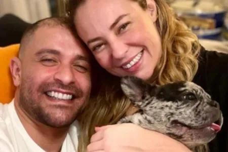 Em suas redes sociais, Diogo Nogueira e Paolla Oliveira apresentaram nesta quinta-feira (21) o novo integrante da família, o cãozinho Bruttus Batuque. Na foto, Paolla escreveu “Mais novo morador da casa… Notem a plenitude do Bruttus Batuque. Enquanto a gente tenta sair bem na foto com ele”.