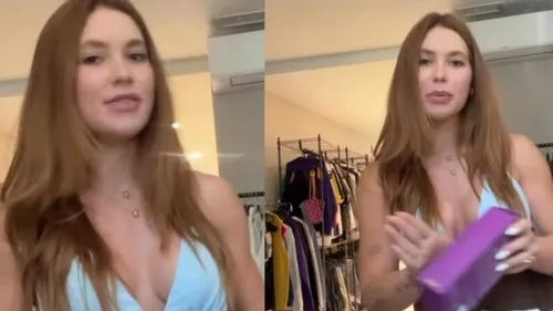 Ainda sem admitir que está tendo um affair com o craque, a famosa chamou a atenção ao se gravar em um cômodo com roupas masculinas. Enquanto dava seu bom dia para os milhões de seguidores, atrás dela havia araras com peças e sapatos de homem.