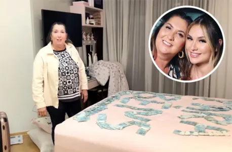 Virgínia divulgou o momento da surpresa em seu canal, no YouTube, nesta segunda-feira (13). Nas imagens, é possível notar que a influencer e o marido escreveram "Parabéns" com os maços de dinheiro em cima da cama de Margareth, que estava viajando e chegou de madrugada em casa.