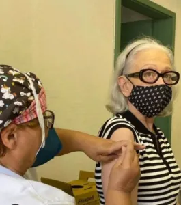 Zezé Motta também comemorou a vacinação nas redes sociais. “Obrigada meu Deus, devidamente vacinada, CoronaVac, Instituto Butantan, Fiocruz, o meu muito obrigada. Aos 76 anos, hoje, agora, este momento, é um dos mais marcantes na minha vida dura porém cheia de sabor”, escreveu. “Fui vacinada no Retiro dos Artista, instituição que com muito orgulho sou vice-presidente. Hoje no Retiro os nossos 57 residentes foram devidamente vacinados.”