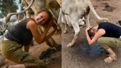 Influenciadora viraliza ao lavar cabelo com urina de vaca; veja vídeo