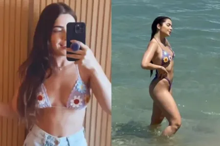 Jade Picon usa biquíni de crochê do BBB22 em praia do Rio