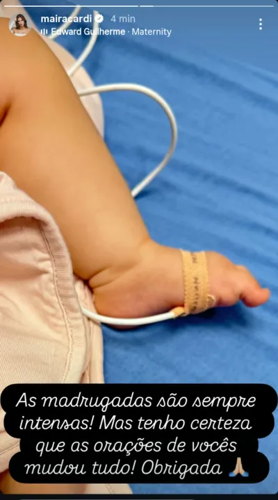 A publicação marcou o retorno de Maíra à rede social, onde não realizava postagens há cerca de seis meses, desde o nascimento da bebê. Ao justificar a volta repentina à plataforma, a influenciadora explicou que buscou o apoio de seu público por razões emocionais, relembrando que, em ocasiões passadas em que pediu orações para sua outra filha, Sophia, obteve respostas positivas rápidas.