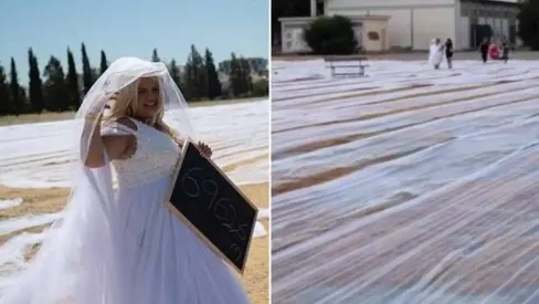 Noiva bate recorde com véu de 6.962,6 metros de comprimento