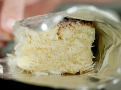 Misture tudo (não precisa levar ao fogo), coloque sobre o bolo ainda quente e polvilhe coco ralado.